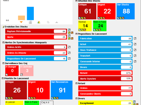 Tableaux de bord entreprise et par gestionnaire : propositions des lancement, alertes, ruptures, retards, …